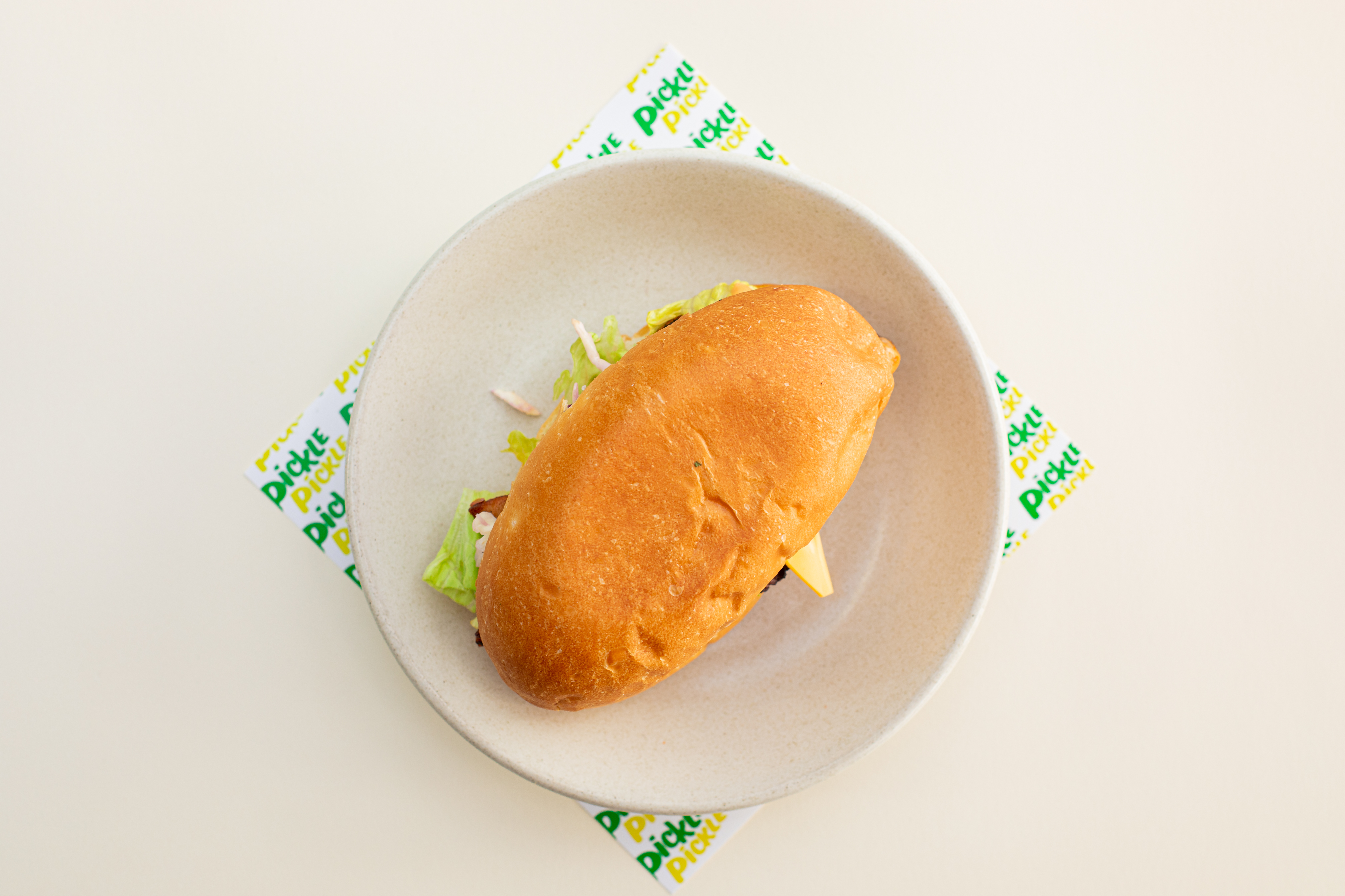 Like cage-free chicken & eggs, local produce,top quality hand-picked cucumbers from McClure’s,small batch sauces & dressings, local craft beers & wines,local handmade brioche sandwich bread from our matePaul (Dusty Apron) and other ingredients from like-minded,local businesses.